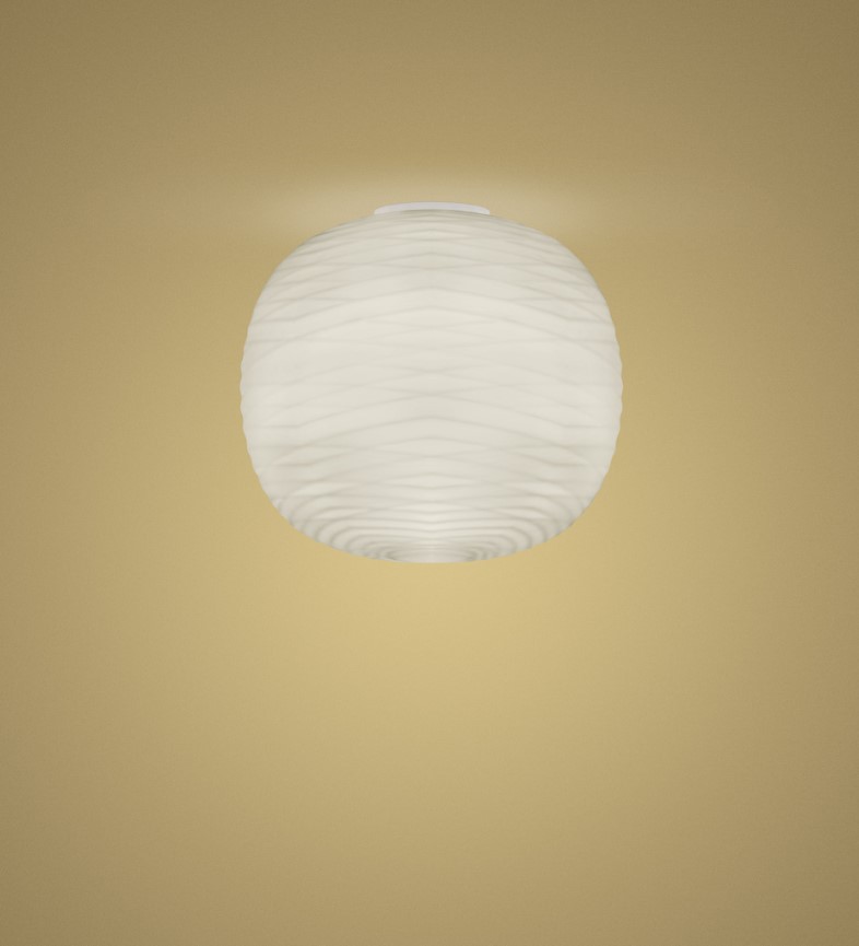 A ceiling lamp that combines practicality and aesthetics with a special artistic workmanship of the glass that generates extraordinary three-dimensional appeal for the diffuser, featuring a graphic pattern that recalls the facets of a gem. Unmistakable when it is switched off, Gem creates unexpected lighting effects when it is switched on.