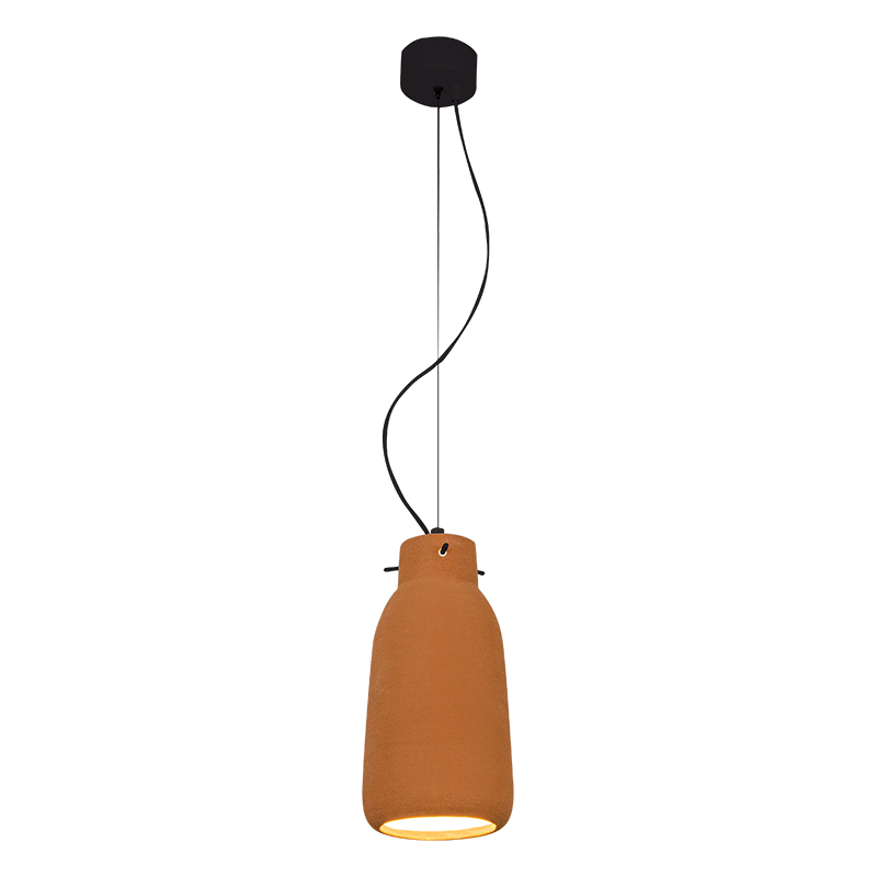 The 1665 Pendant Clay is an elegant and modern lighting fixture made from natural ceramic clay. It features a single E27 socket, supporting a maximum 40W bulb (not included). The light hangs from a 200cm adjustable fabric cable, providing flexibility for installation. With a diameter of 13cm and a height of 27cm, this pendant light offers a subtle and refined design, perfect for brightening up various indoor spaces. The natural ceramic finish brings warmth and texture, making it an ideal choice for contemporary interiors. Operating on a 220-240V voltage, it creates a welcoming and cozy ambiance.