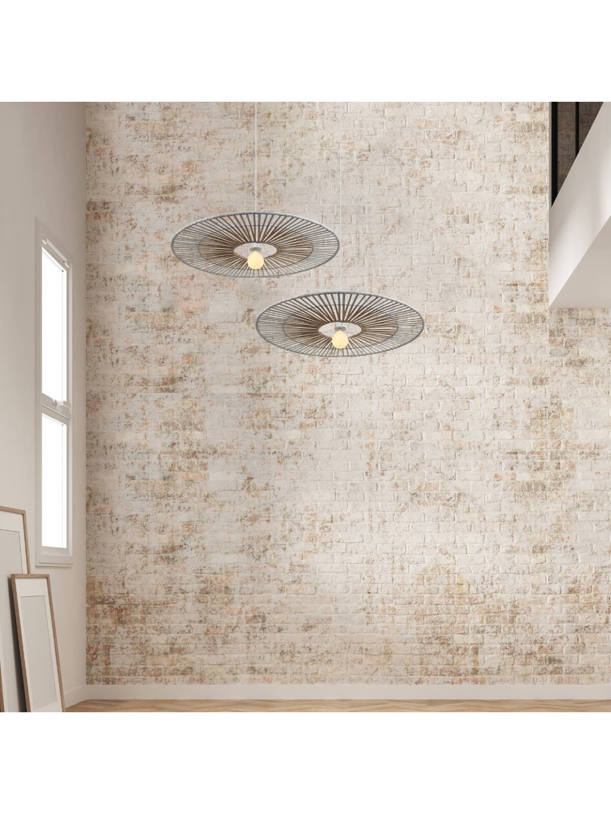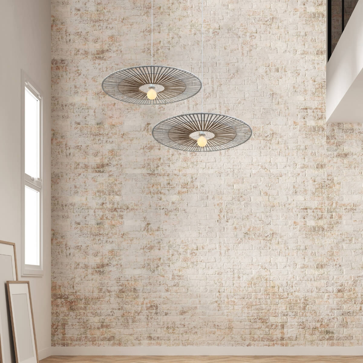 The pendant ligh 19107 it combines natural bamboo with a sleek white finish, offering a warm and inviting look to any room. The metal and bamboo materials create a harmonious balance between rustic and modern design. It features a 150cm cable for flexible installation and is compatible with an E27 bulb (max 40W, not included). With dimensions of 40cm in diameter and a height of 1.5cm, this light is perfect for illuminating various spaces.