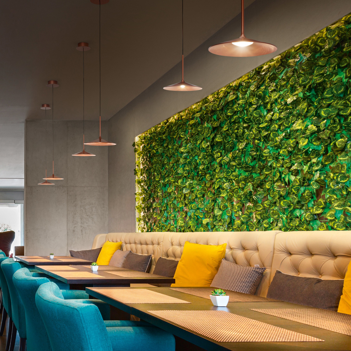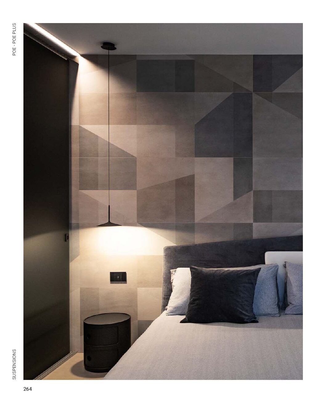 A pendant lamp with a minimalist shape, it illuminates with direct light and is perfect in any living space. Compared to the standard Poe_P model, the Plus version has an increased diameter of 40cm and a brighter LED source. Metal frame painted white or wrinkled black, or copper. Polymethylmethacrylate diffuser.